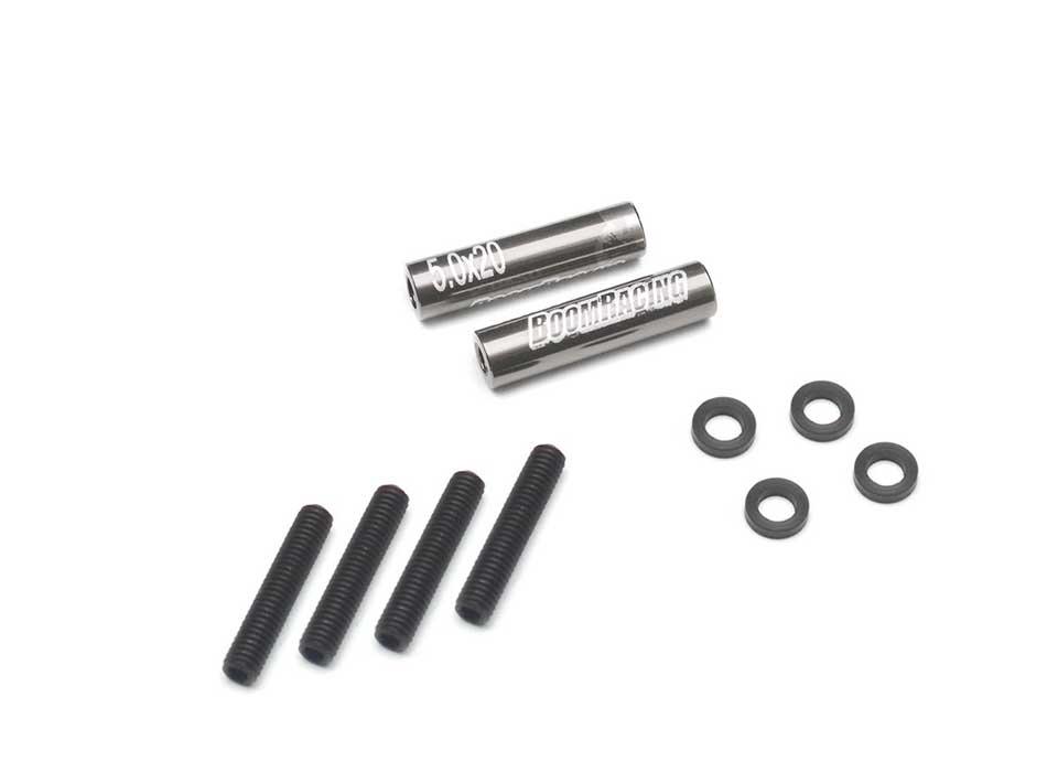 Boom Racing Threaded Aluminum Link Pipe Rod 5x20mm (2) w/ Set Screws & Delrin Spacers Gun Metal