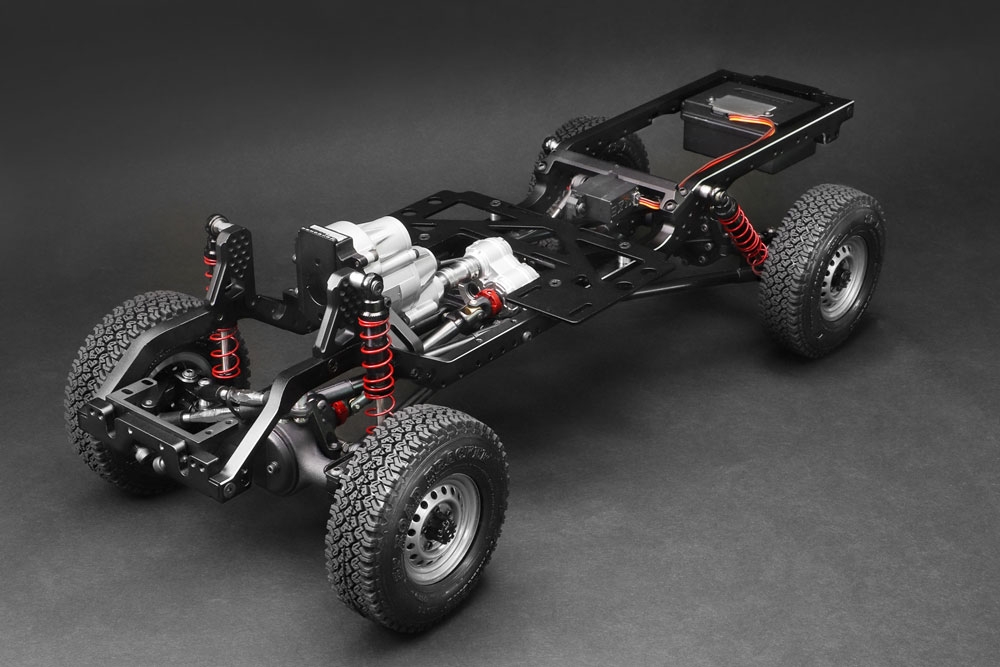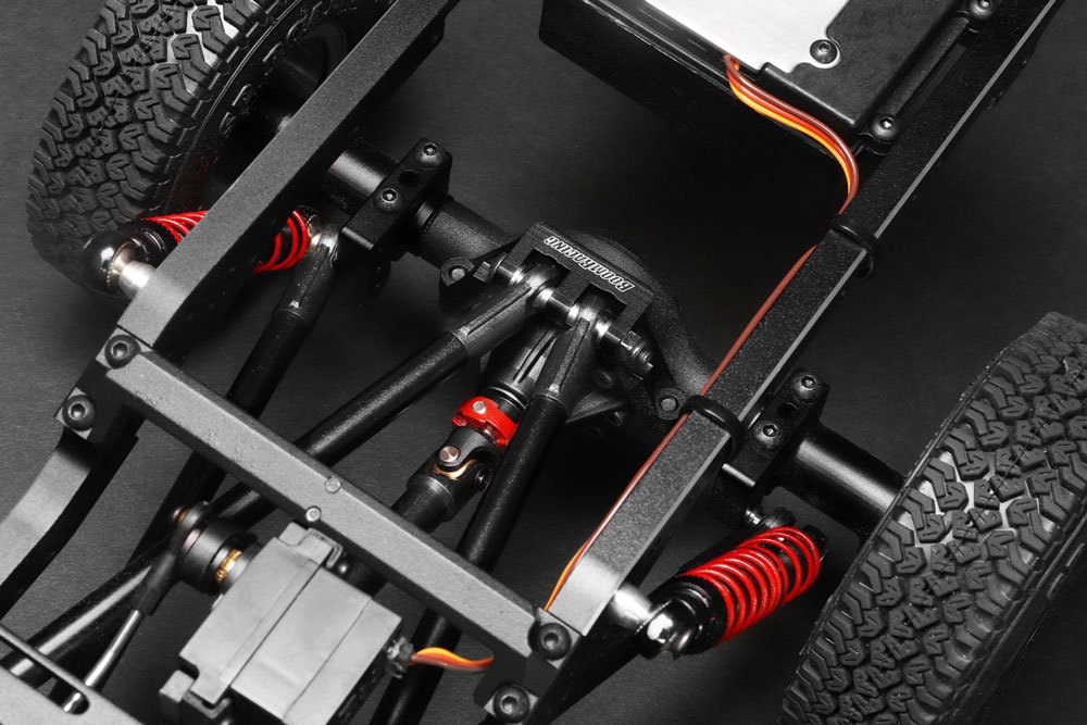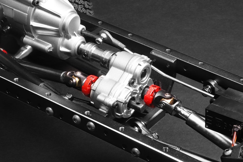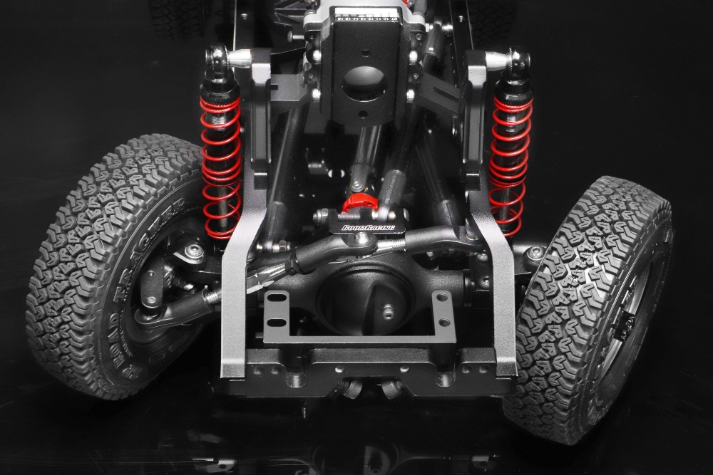 ลิ้งค์สำหรับเลี้ยววางหลังคานเพื่อทำให้เลี้ยวได้มากกว่าและเพิ่มความสมจริง ชุดลิ้งค์เลี้ยวทั้งหมดเป็นสเตนเลส พร้อมกับตัวปรับแบบขันเกลียวเพื่อความสะดวกรวดเร็วในการตั้งค่าการเลี้ยว